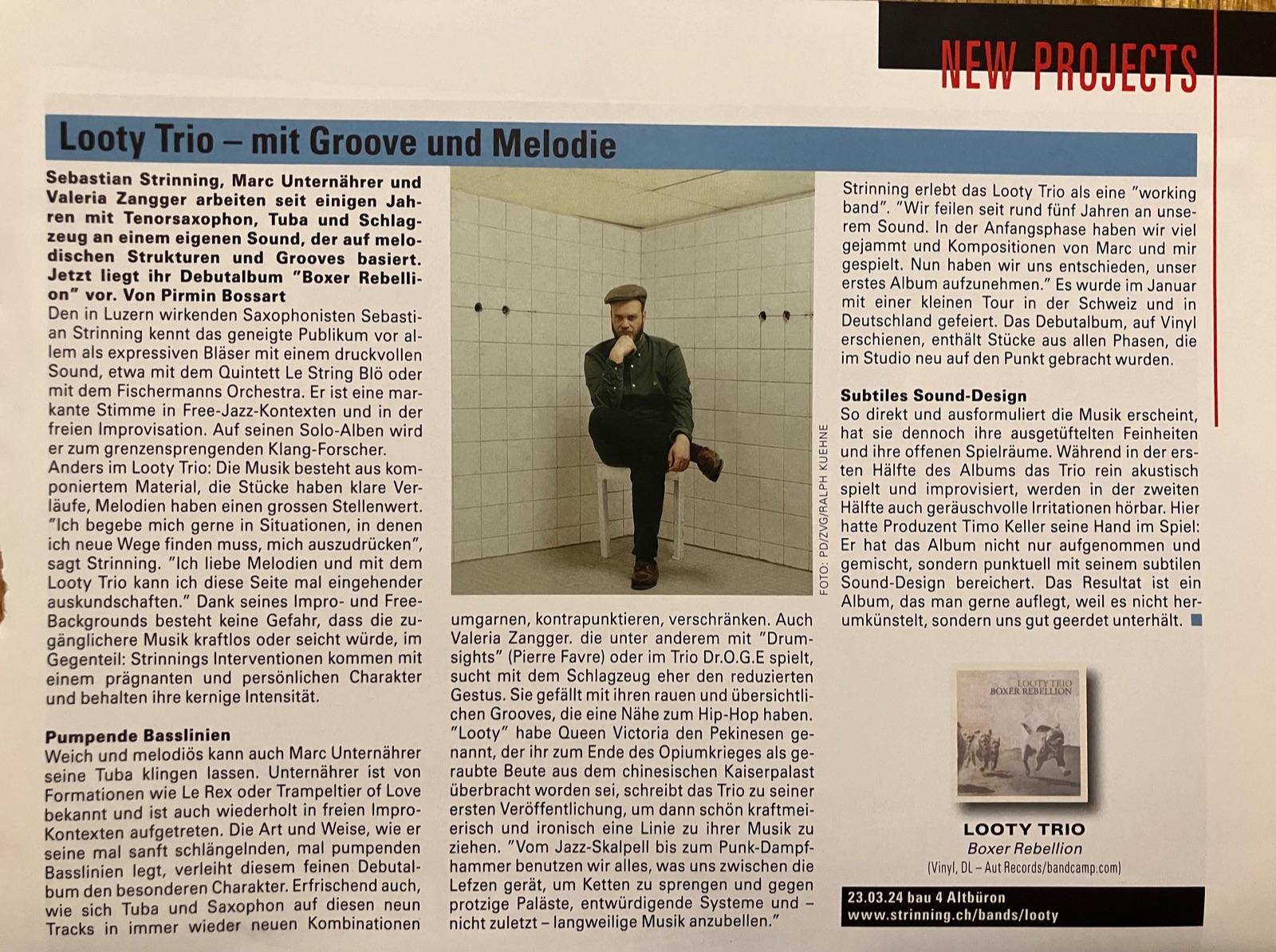 Jazz Festival Willisau / Schönegg Varieté, Zürich / Bau 4, Altbüron / Jazz Linard, Lavin / Fee Fi Fo Fum Festival / Jazzclub Aarau / Neubad, Luzern / Bejazz, Bern / JazzChur / Tante Betty, Nürnberg / All That Jazz, Chemnitz / Peppi Guggenheim, Berlin / Fisch und Vogel, Winterthur / Hidén Harlekin, Zug / Quartierfest Fluhmühle, Reussbühl / Literatur Café, Biel / Kinderkonzert, Mullbau Luzern / Werft, Luzern / Kulturstunde, Basel